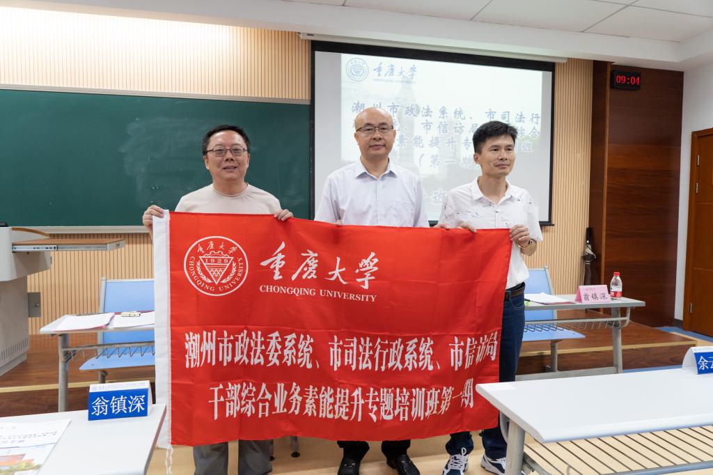 6月17日上午,潮州市委政法委系统、市司法行政系统、市信访局干部综合业务素能提升专题培训班第一期在重庆大学B区顺利开班。重庆大学法学院副院长秦鹏、潮州市司法局党组书记、局长翁镇深出席开班仪式,全体学员共68名参加。开班式由重大法学院培训中心老师谢美主持。
