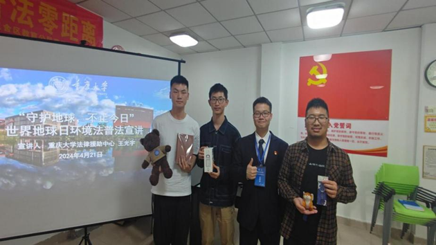 为迎接第55个世界地球日,提升民众对于现存环境问题的认识,呼吁并引导广大师生共同守护地球家园环境,2024年4月21日,重庆大学法学院法援中心红岩党支部、法学院本科第三党支部与重庆大学虎溪舍区教育公民意识培养项目组在虎溪校区联合开展了“守护地球,不止今日”世界地球日讲法学法专题活动。此次活动面向虎溪校区在校师生,涵盖普法宣讲与法律咨询两个环节。