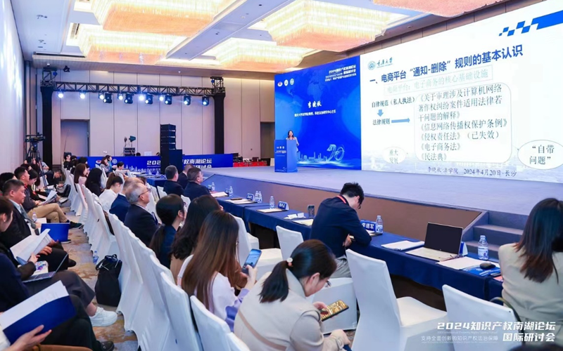 2024年4月20日~21日,2024年知识产权南湖论坛国际研讨会在长沙举行。知识产权南湖论坛由中南财经政法大学知识产权研究中心于2004年创办,是知识产权界一年一度的学术盛宴,也是知识产权界进行学术思想交流的重要平台。本届论坛由中南财经政法大学和中南大学主办。研讨会聚焦“支持全面创新的知识产权法治保障”,来自英国、美国、德国、日本、韩国的知识产权界专家学者和900余名全国各地知识产权管理部门、人民法院、高等院校、企业、法律实务部门的学界精英、业内翘楚、海内名宿齐聚美丽星城,共同献智知识产权高质量发展。
