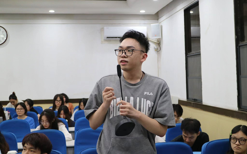 现场同学向张栋教授提问。张栋与同学们就相关法律用语在规范上的统一、涉案财物问题中的其他学科逻辑体现以及实践中办案压力过大导致的涉案财物证据制度程序形式化等问题进行了交流。他从刑事诉讼涉案财物制度基本概念的内涵和外延、发展现状以及发展需求等方面对同学们的问题进行了深入、翔实的解答。