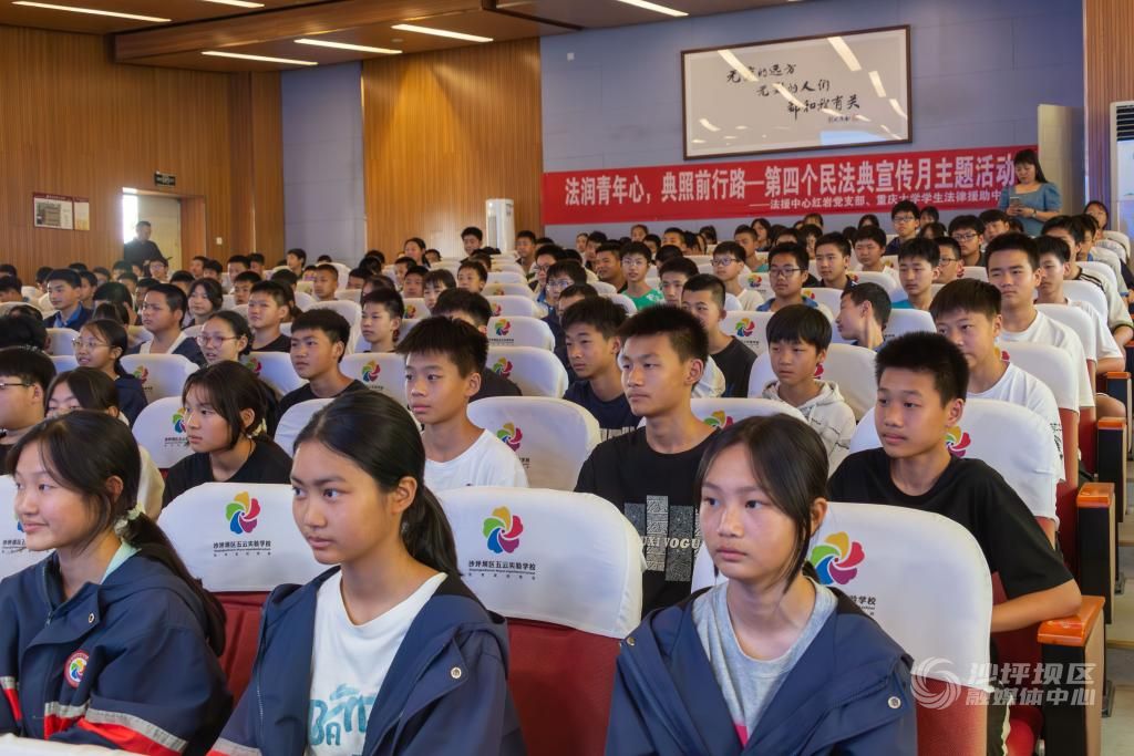 为大力弘扬法治精神,营造优良的校园法治氛围,5月15日,重庆大学法学院法援中心红岩党支部、重庆大学学生法律援助中心组织在校研究生志愿者团队走进沙坪坝区五云实验学校,开展了一场“法润青年心,典照前行路——校园反霸凌宣讲”专题普法活动。600余名初中学生参加活动。