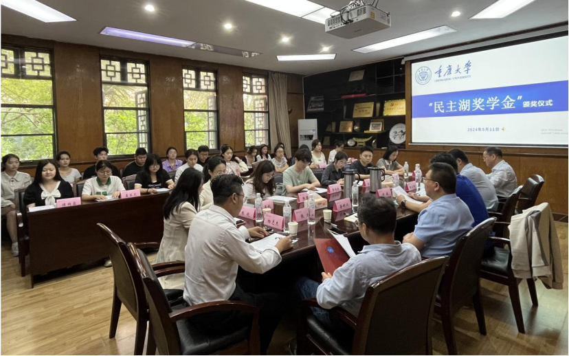 2024年5月11日下午,2024年重庆大学“民主湖奖学金”颁奖仪式在法学院举行。出席本次仪式的有重庆大学教育发展基金会秘书长许骏、资源拓展部部长陈晓,法学院党委书记蒋研川、院长靳文辉、党委副书记杨志杰、民商法学科带头人张舫、研究生办公室主任柳青,民主湖教育基金发起人宋宗宇以及30名获奖学生代表。仪式由法学院党委副书记杨志杰主持。