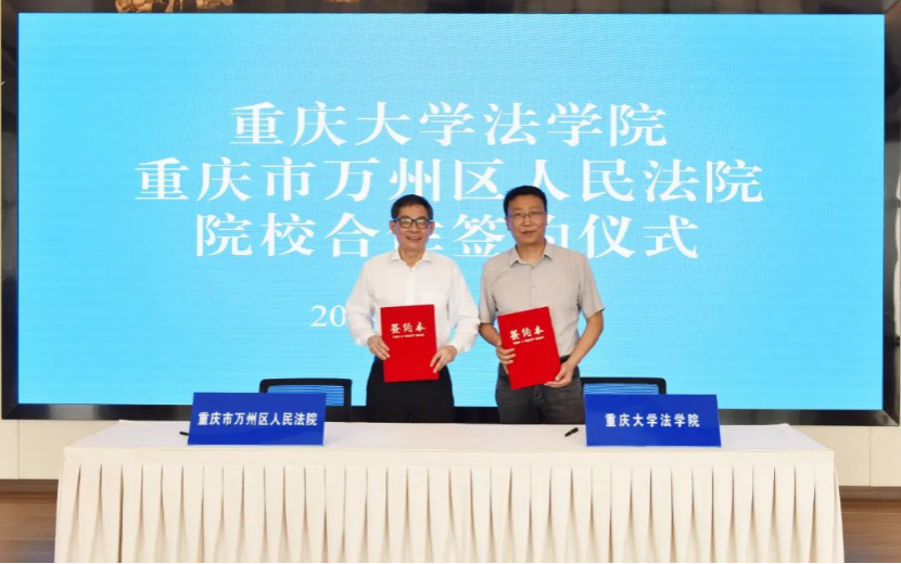 5月17日,重庆大学法学院与万州区人民法院举行院校合作协议签约仪式并开展座谈交流,法学院院长靳文辉、副院长秦鹏,万州法院党组书记、院长陈忠,党组成员、副院长万云松,党组成员、政治部主任代元令,审判委员会委员冯纲等参加活动。