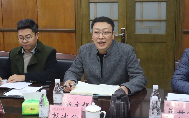 靳文辉代表学院对凯原法学院彭诚信一行来访表示热烈欢迎,并简要介绍了重庆大学法学院的基本情况。他表示,重庆大学法学院始终坚持立德树人根本任务,致力于建设高质量人才培养体系,并介绍了学院在学科建设、师资队伍和人才培养等方面的举措和成效。