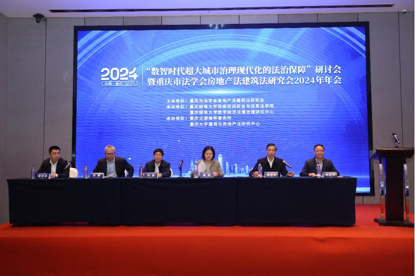 2024年12月1日,“数智时代超大城市治理现代化的法治保障”研讨会暨重庆市法学会房地产法建筑法研究会2024年年会在嘉发希尔顿逸林酒店举行。此次会议由重庆市法学会指导,重庆市法学会房地产法建筑法研究会主办,重庆邮电大学网络空间安全与信息法学院、重庆邮电大学数字经济法律治理研究中心承办,重庆立源律师事务所、重庆大学建筑与房地产法研究中心协办。来自重庆大学、西南大学、西南政法大学、重庆邮电大学、重庆理工大学、重庆工商大学、重庆科技大学、贵州省社会科学院、中冶赛迪集团有限公司等高等院校、人民法院、律师事务所以及知名企业等30余家实务部门的专家学者、实务工作者、在校学生共110余人参加会议。