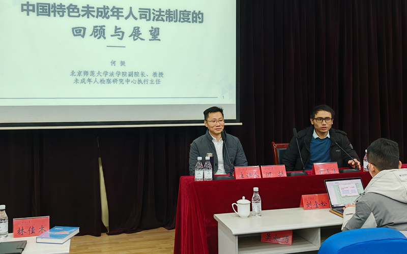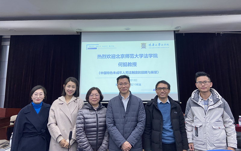 2024年12月13日,北京师范大学法学院暨刑事法律科学研究院副院长何挺教授莅临重庆大学法学院,作题为“中国特色未成年人司法制度的回顾与展望”的学术讲座。讲座由重庆大学法学院自正法老师主持,重庆大学出版社林佳木老师以及法学院胡婧、杨焘、刘金松等百余名师生参加。
