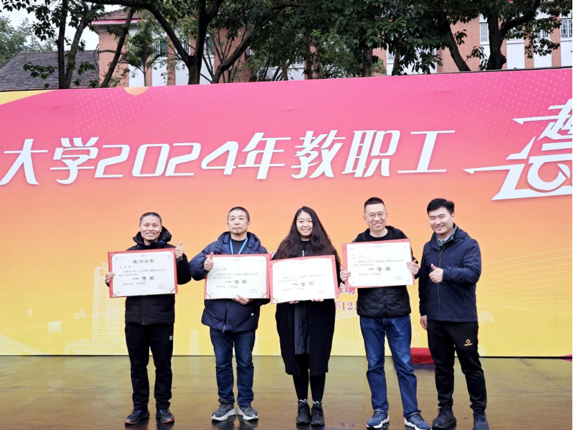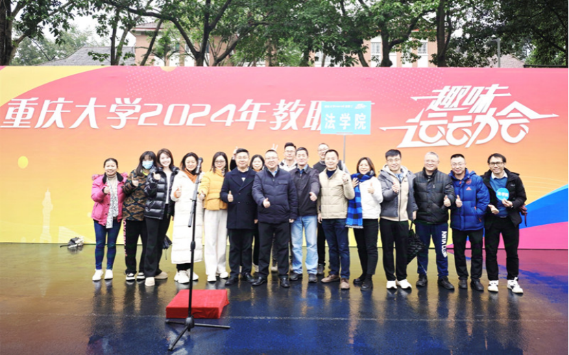 2024年12月12日,重庆大学2024年教职工趣味运动会在B区足球场举行。本次运动会由校工会主办,参与的教职工来自学校41个分工会。法学院党委书记蒋研川、党委副书记杨志杰、分工会主席雷安军及教师代表李晓秋、翟翌、徐信贵、肖洪、自正法、刘力强、李延思、向东升、傅翔、陈济新、肖文芳、龚佳妮、向丽绢、赵丰、黄文轩、高颖文、刘金松、闫文睿、谢美、雷鸣、谭鸿等参与。