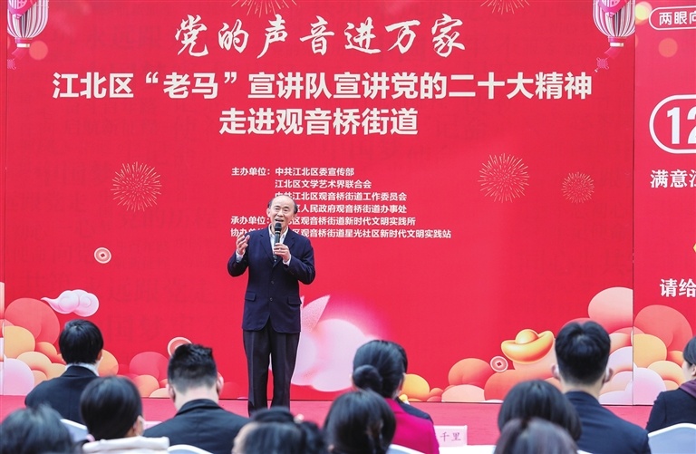 近日,“新春走基层·理论进万家”——“老马”宣讲队宣讲党的二十大精神走进重庆市江北区观音桥街道星光社区和华新街街道桥北社区。
