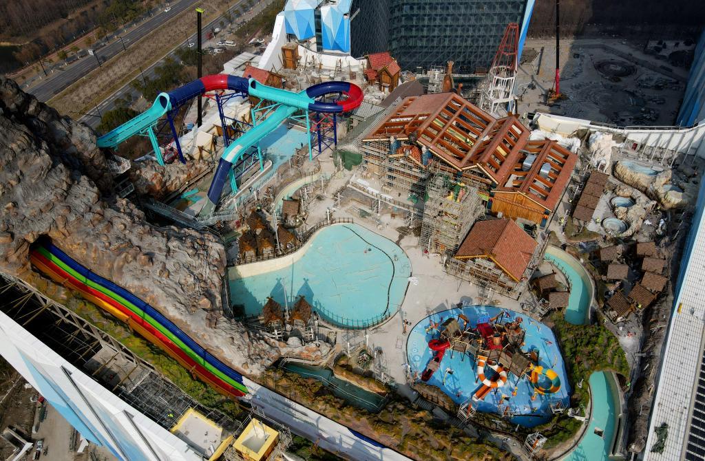在甘肃省临夏回族自治州和政县松鸣岩国际滑雪场,游客们正穿梭在新建成的“光头强的家”,嬉笑喧闹声此起彼伏。