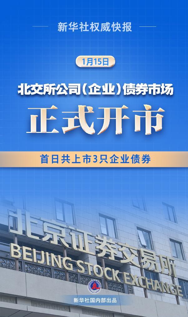 2024年1月15日,北京证券交易所公司(企业)债券市场正式开市,标志着高质量建设北交所迈出新步伐。