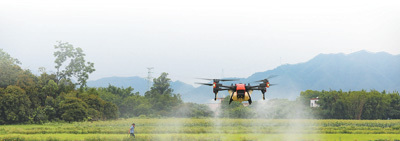 近年来,一系列税收优惠政策为农业生产带来资金支持,促进生产提质增效。图为广东省清远市清新区三坑镇竹楼村,植保无人机正在进行病虫害防治作业。刘醉红 摄