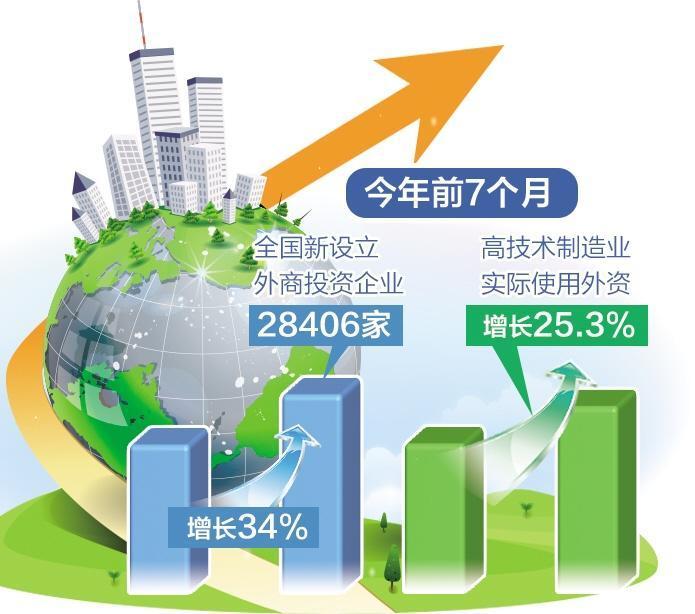 商务部数据显示,今年前7个月,高技术产业实际使用外资同比增长3.8%,其中高技术制造业同比增长25.3%。调查显示,“技术创新与研发”连续两年被受访外资企业认为是在华最主要发展机遇。