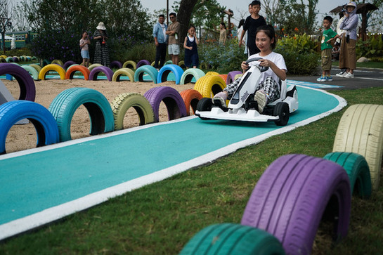 江苏省宿迁市宿城区推动农文旅融合发展,打造一批集旅游、度假、康养、研学等为一体的特色综合体。图为小朋友在宿城区朱海康养旅游度假区玩耍。新华社记者 季春鹏 摄
